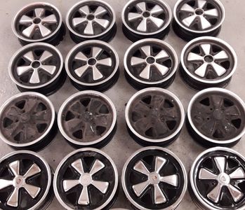 We can restore wheels from the '60's, '70's and '80's eras, spanning the usual range of 'aged' and 'tired' conditions. If the wheels are heavily aged or previously coated with paint, laquer or chrome it is only during the stripping process that the true condition of the original aluminium can be revealed.