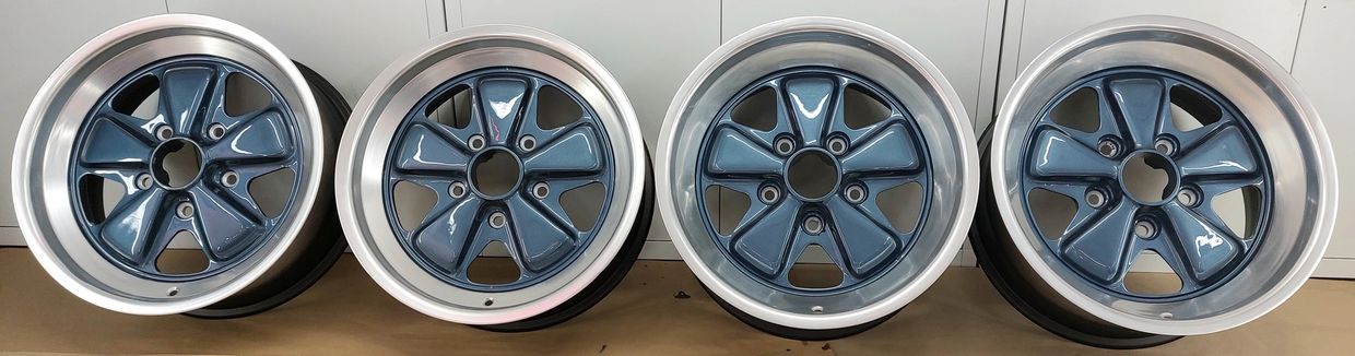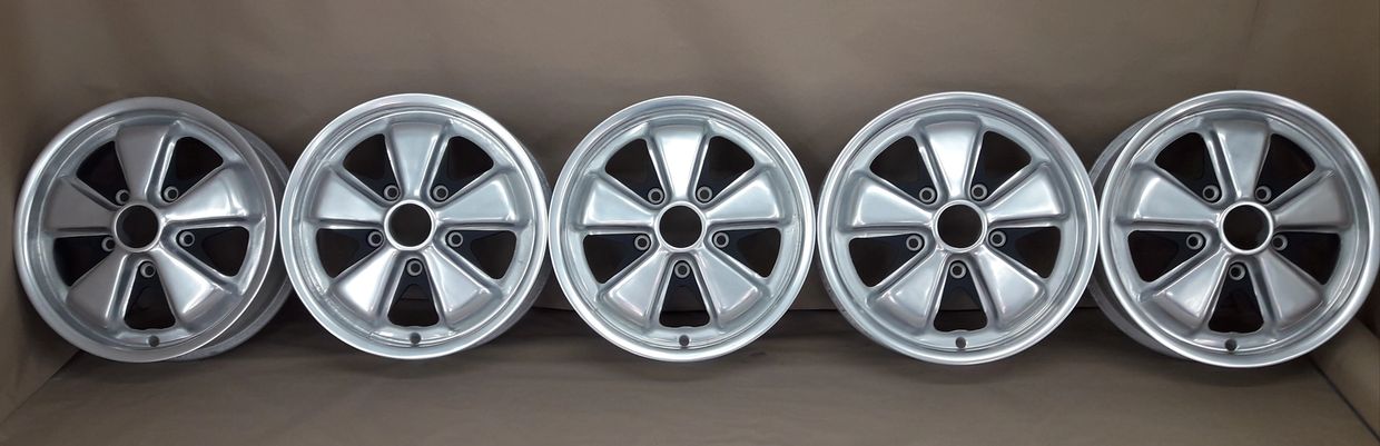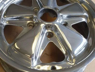 At MCE Porsche we can offer a complete in-house Fuchs restoration service for MCE-maintained vehicles or as part of the scope of a wider restoration project being undertaken in our workshops. We take aged original Fuchs rims and restore them back to original condition, using the same polishing, anodising and paint finshes as applied in-period, resulting in a finished wheel restored to concours-correct standards.