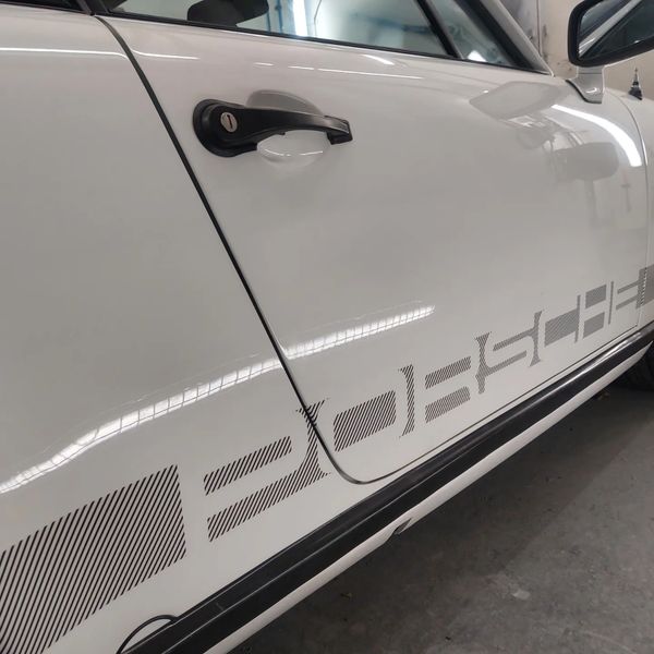 Available as an option from the factory during the period 1974-1977. If your CoA, build spec or options list states 'Porsche Script on Sides Black Hatched', then this is what you need. Different to the aftermarket solid-black lettering, and no longer available from Porsche. No aftermarket vinyl suppliers were making these so I had a few sets made up to apply to cars going through in-house restoration. I also had a few spare sets made in case anyone else needs some. Sold as a pair to do the LH & RH of the car, one set does one car.